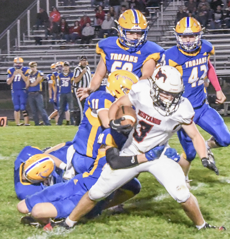 Friday night’s final regular season road trip to Tri County High School to face the 2-5 Trojans proved to be a little more than the Sutton Mustangs thought that they’d have to deal with as Sutton, after taking a 24-8 first-quarter lead, had to hold on for dear life in the second half, especially in the third quarter.