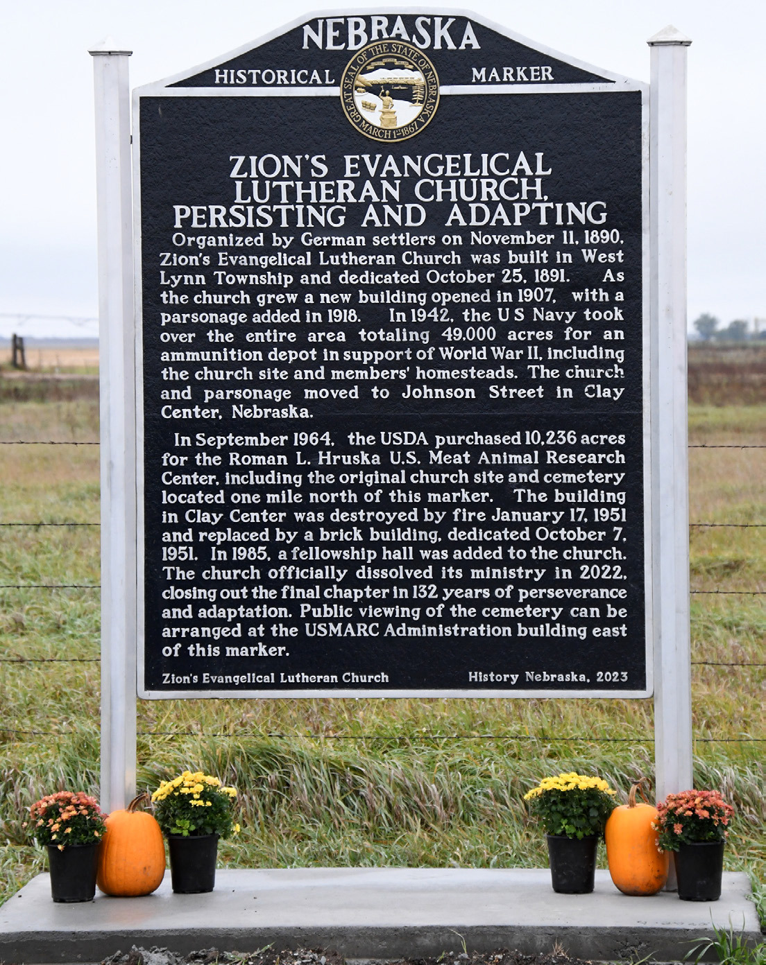Sitting one mile south of its original site of the Zion Evangelical Lutheran Church is a historical marker, commemorating the church’s history.