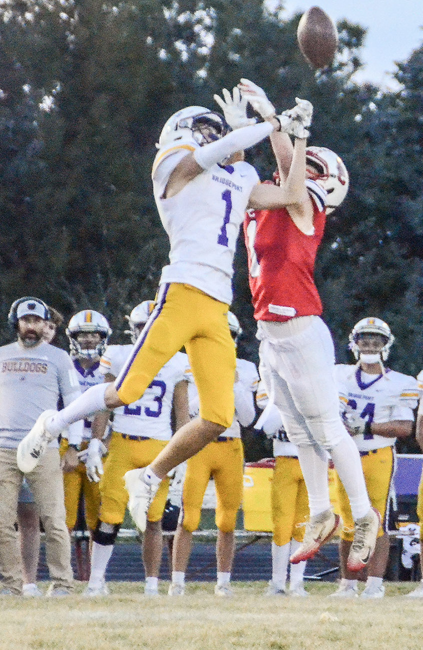 Sophomore Alex Watts breaks up this pass intended for Bridgeport’s Gage Nein during the Cougars quarterfinal win over the Bulldogs. MELISSA WHITEFOOT | CLAY COUNTY NEWS