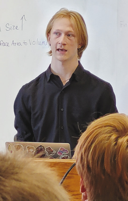 Karlee Bailey, left, and Nick Fuller present on their mentorship experiences. ASHLEY D SWANSON | CLAY COUNTY NEWS