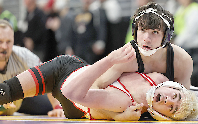 Bergen’s weekend in Omaha began with a quick 15-second pinfall win over Sandy Creek’s Jackson Gerdes to start his trek to the 175-pound weight class state title.