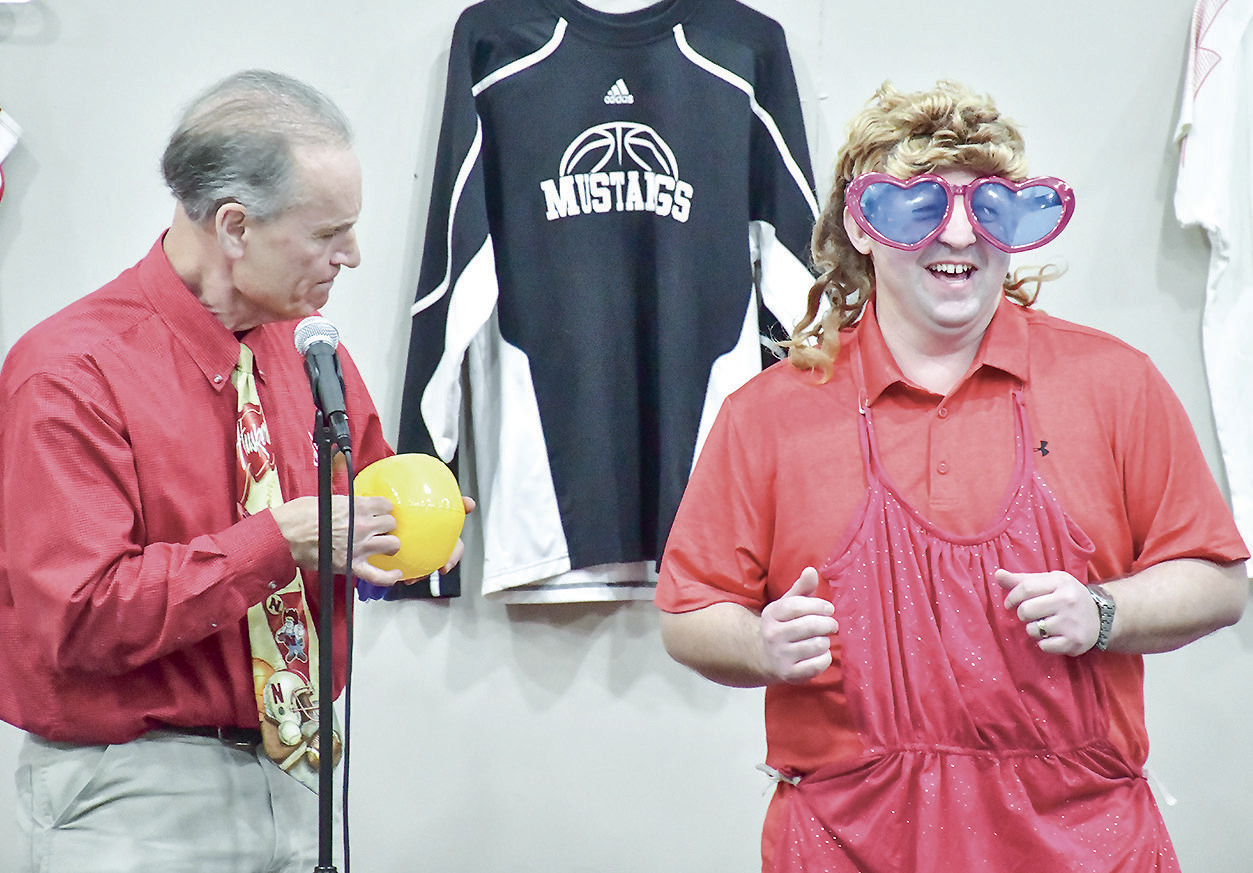 The Sutton Stampede Booster Club held its second annual fundraising banquet Saturday, March 21, with nearly 200 people filling the Sutton Community Center for the event. Above, auctioneers Colt Pope, left, and Chandler Stone, right take charge of the live auction following an entertainment session from comedian and magician Gayle Becwar, shown at the left with Sutton superintendent Jason Cline, who stole the show with his centerstage act during Becwar’s magic act. With strong donor support, the booster club has contributed more than $50,000 to school activities. Additional highlights can be found on page 5A in this week’s edition. TORY DUNCAN | CLAY COUNTY NEWS